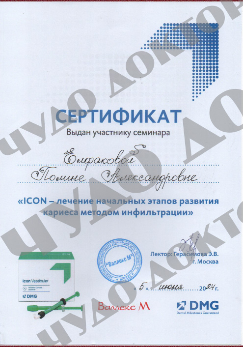 2024 г. – «ICON – лечение начальных этапов развития кариеса методом инфильтрации», DMG, Москва