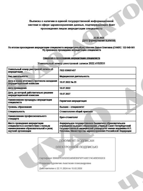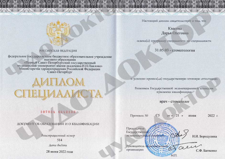 2022г. ПСПбГМУ им. акад. И. П. Павлова, Санкт-Петербург, Врач-стоматолог